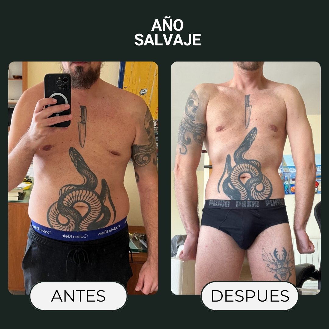Álvaro comenzó en unos 88-90 kg el Programa Año Salvaje, un año después, en la fase Salvaje (la última) estamos rozando los 73 kg