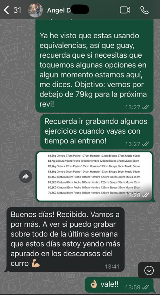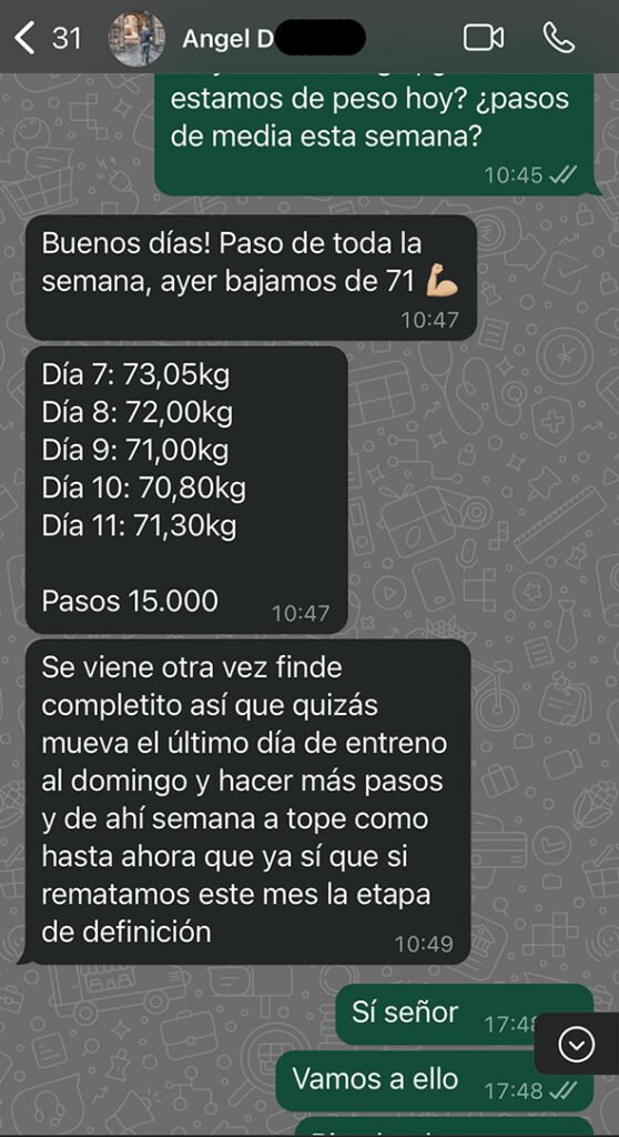 Con Ángel empezamos a ver las primeras bajadas de peso corporal y cintura de forma constante: