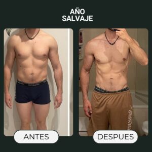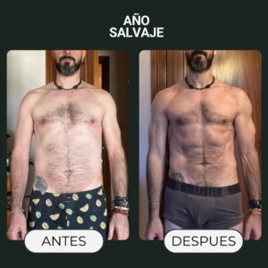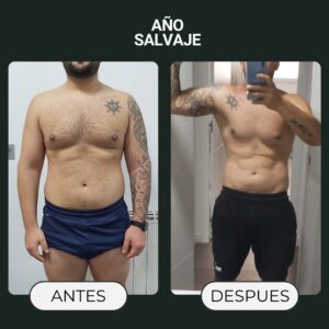 Gabriel empezó en 173 cm de altura y 73 kg de peso corporal, entrenaba y era activo de por si, pero buscaba algo más porque se veía estancado y cansado de no ver materializado todo su esfuerzo. Año Salvaje ha sido la solución